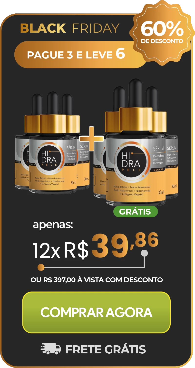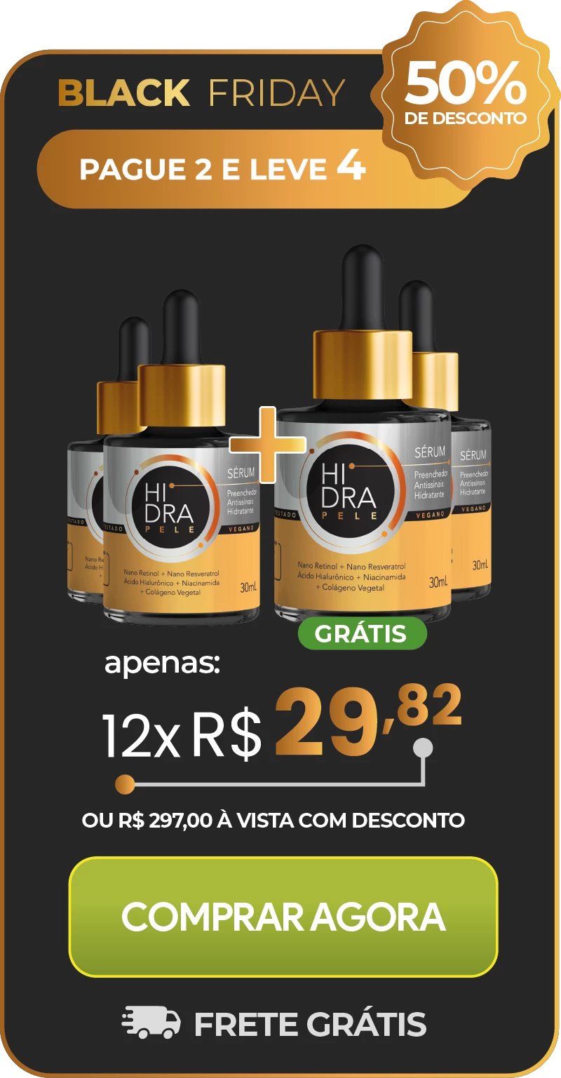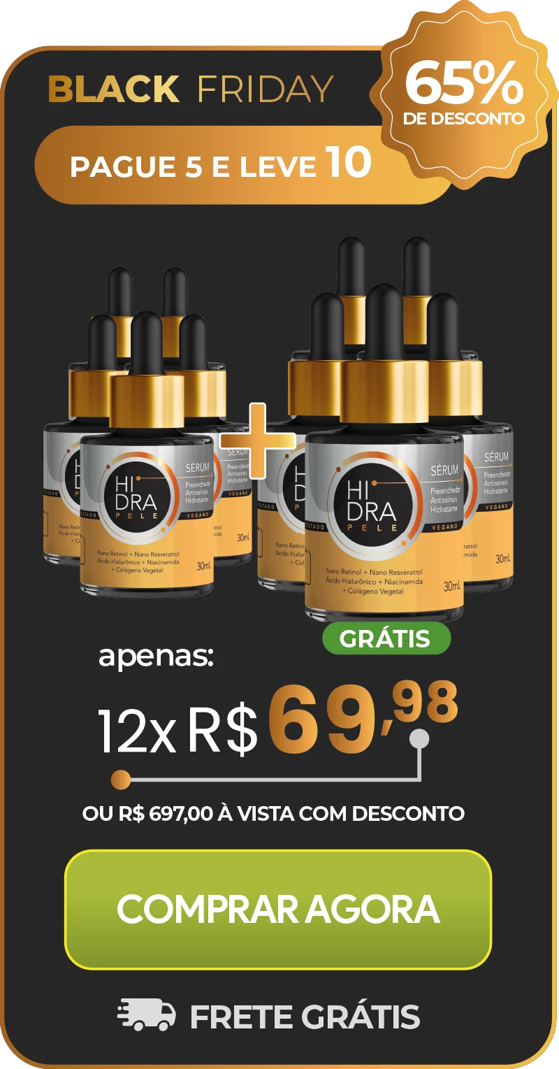O Sérum HidraPele acelera a renovação celular, deixando sua pele mais jovem e saudável ao longo dos anos. Não se preocupe mais com as mudanças negativas que a idade traz – experimente e se sinta mais confiante e atraente a cada dia. Não deixe a idade definir sua aparência – descubra uma nova e mais jovem versão de si mesmo(a)
